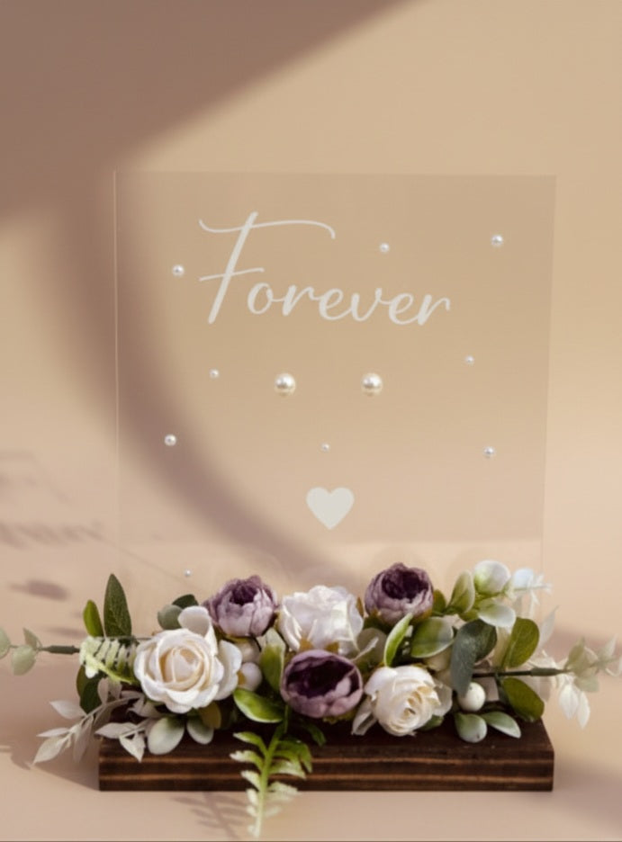 A charming blend of modern elegance and rustic warmth, the Abby Ring Holder features a transparent acrylic ring stand fixed on a natural wooden plank. Accentuated with delicate pearls and soft florals, this design adds a graceful and timeless touch to your special day. Perfect for weddings, proposals, or keepsake displays, the Abby ring holder effortlessly combines sophistication with nature-inspired beauty.