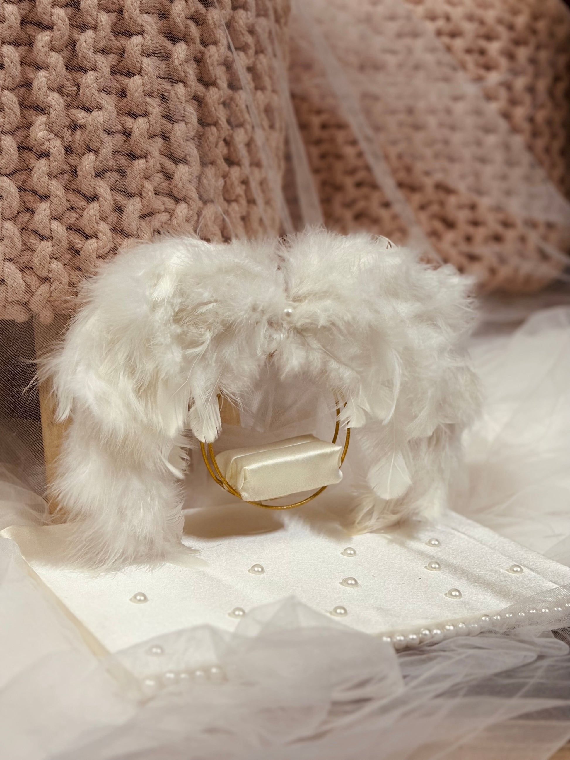 Elegant and enchanting, the Sophia Ring Holder is designed to hold your most precious symbol of love in timeless style. Shaped like a delicate heart, this white ring holder is adorned with soft feathers and lustrous pearl accents, creating a dreamy, romantic look perfect for any wedding theme.